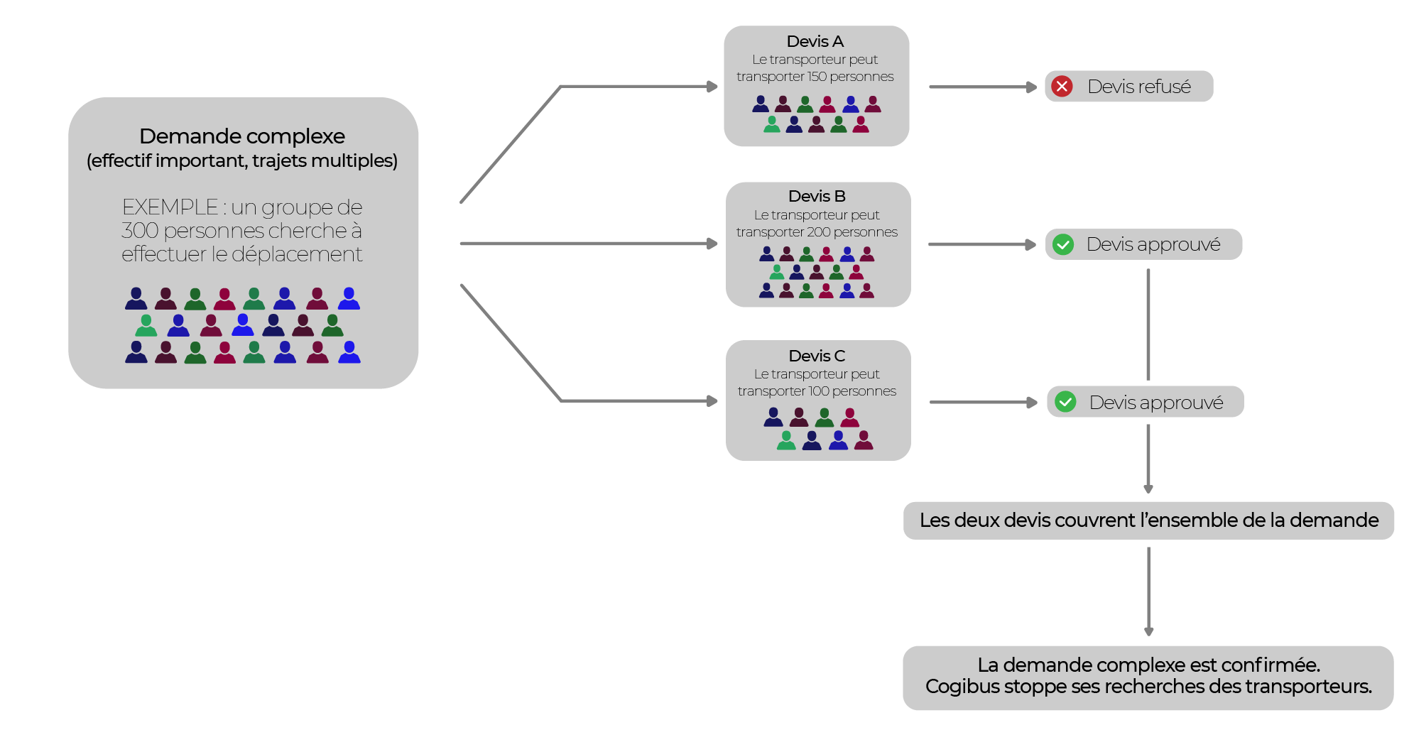 Une fois que les deux groupes de voyageurs ont été mis en contact et ont accepté de voyager ensemble, alors sur chaque demande apparaît un lien pour montrer qu’elles sont liées l’une à l’autre. Cela vous permet pour chaque demande de proposer un devis à un tarif plus intéressant, en précisant la non-exclusivité de l’autocar. Ensuite, il faut attendre que les deux devis soient acceptés pour confirmer les deux devis.