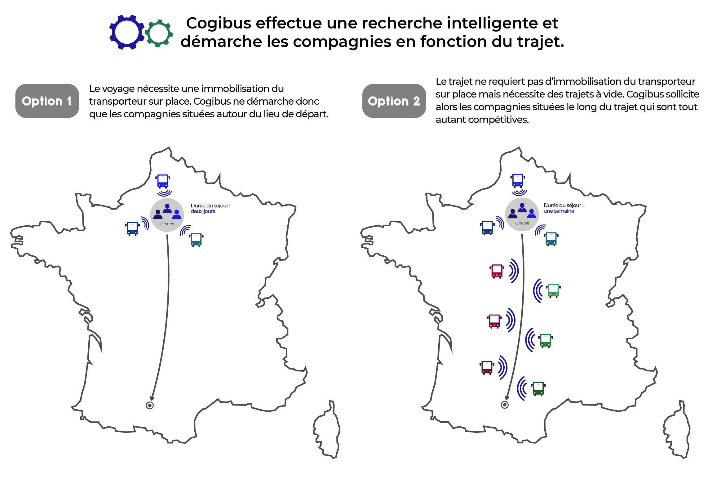 Cogibus a imaginé cette fonctionnalité pour vous permettre de rentabiliser au maximum vos déplacements. La fonctionnalité de recherches complémentaires permet d’effectuer des transferts à proximité de l’endroit où se situe votre autocar pour rentabiliser la période où celui-ci est immobilisé.