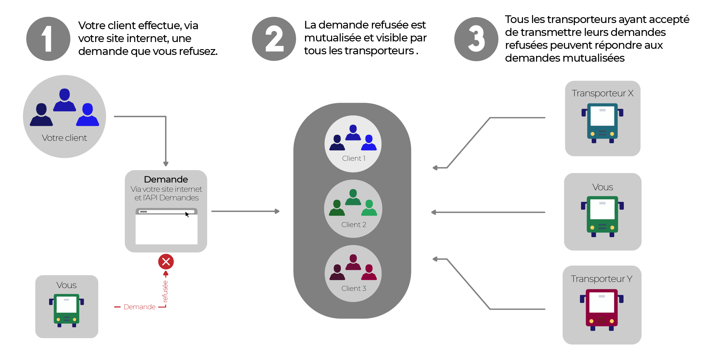 Lorsque vous refusez une demande privée parce que vous ne pouvez pas y répondre et que le client a accepté que sa demande soit mutualisée, alors la demande devient publique et seules les compagnies qui ont activé la fonctionnalité de mutualisation peuvent y accéder.